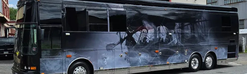 Budget Truck & Auto wrapped Dennis King's Black Pearl Bus under the direction of Graphics Sales Manager Sandie Marquis. | Photo: via Bus & Motorcoach News |